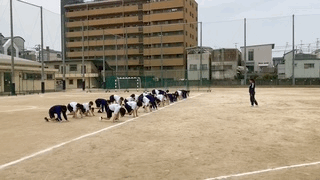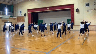 女子は、クラウチングスタートの練習をしています。