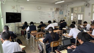 修学旅行の振り返りをしています。