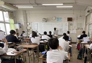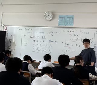 数学は、等式の変形について、1年生の時の復習もしながら学習しています。