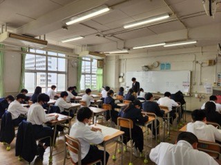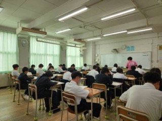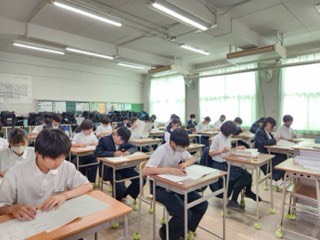本校では1学期の中間テストはありませんが、1年生には「定期テスト」を体験してもらうため、プレテストを行っています。