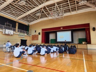 特別支援コーディネーターの塚本先生より講話をしていただき、障がいによる"ちがい"について向き合い、考える機会となりました。