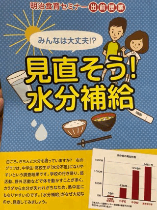 株式会社明治の方を講師にお招きし、『見直そう水分補給』というテーマで水分の大切さを学んでいます。
