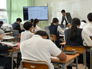 理科は、イオン式についての学習と、学習者用端末を活用して、全国学力・学習状況調査のCBTの問題に取り組んでいます。