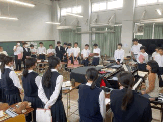 音楽は、校歌や歌謡曲を歌唱しています。