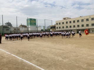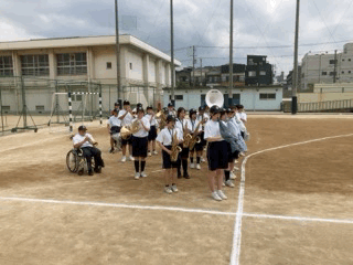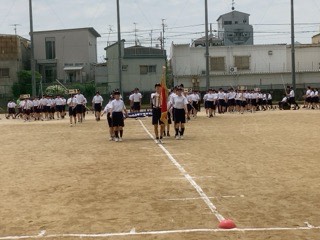 今年度は、吹奏楽部の生演奏に合わせて行進します。