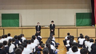 本日より3週間、本校卒業生の方が教育実習を行うため、挨拶がありました。