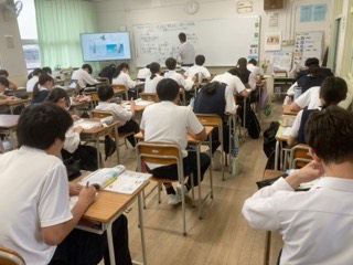 理科は、電池の仕組みについて、水溶液とイオンの関係を含めながら学習しています。
