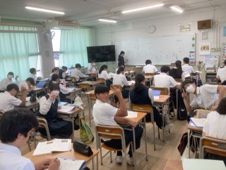 英語は、「世界で楽しまれるバスケットボール」を題材にした教科書の内容の確認をしています。