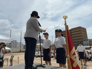 学級旗の最優秀賞は1-1、優秀賞は3-1でした。