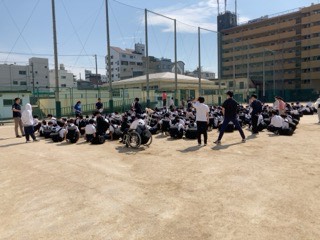 地域ごとに班分けし、先生引率のもと下校します。