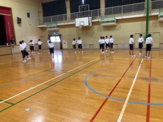 男子は、ラジオ体操をしているところを学習者用端末で撮影し、自分たちで確認し、修正しています。