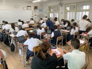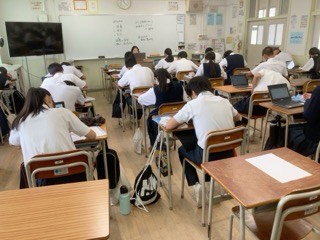 英語は、英単語の調べ学習や、英作文の課題に取り組んでいます。