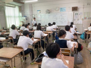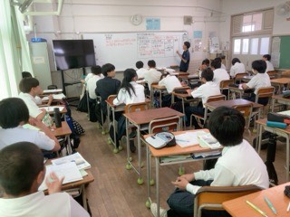 数学は、分数・少数の含まれる連立方程式と『A=B=C』の連立方程式の演習問題に取り組んでいます。