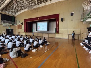 校長先生のお話の後、今週の水曜日にドリームプロジェクトで本校にお越しいただく、元女子バレーボール選手、井上愛里沙さんの紹介が生徒会からありました。
