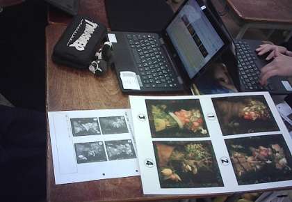 美術は、四季をテーマに鑑賞の授業に取り組んでいます。学習者用端末を使用して考えを入力しています。