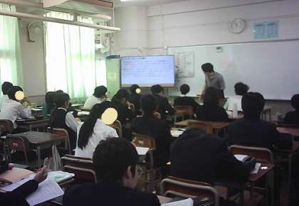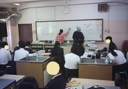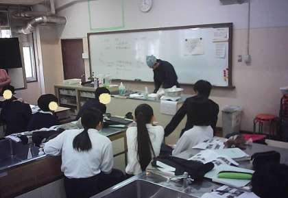 家庭科は、魚(アジ)の3枚おろしの仕方について手本を見ながら学習しています。