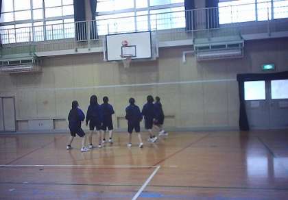 女子は、バスケットボールの効果的な練習方法を自分たちで考えて実践しています。