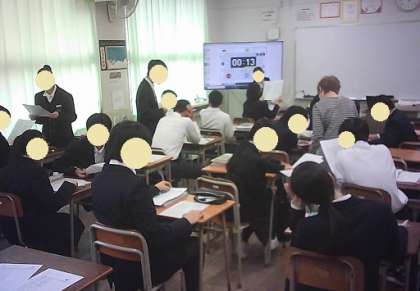 英語は、新出単語の学習をペアワークで行っています。