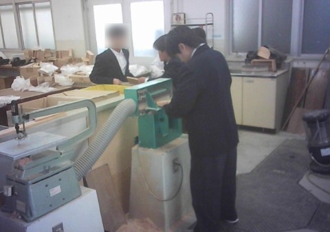 技術は、製作品を組み立てる前に材料を調整しています。