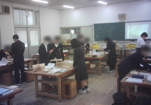 家庭科は、基礎縫いの練習も兼ねてふきんの制作をしています。