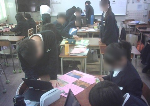 英語は、日本の都市を英文で紹介する資料を班で作成しています。