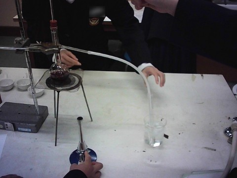 理科は、ワインの蒸留の実験をしています。