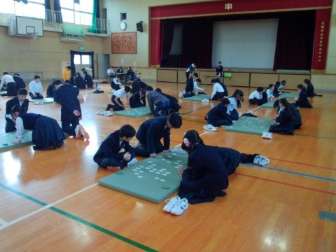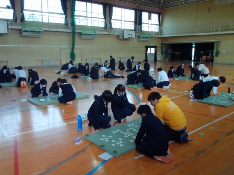 先生も参加して、札を取られた生徒はとても悔しそうにしていました。