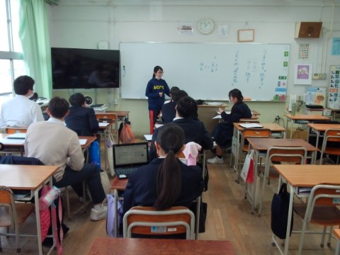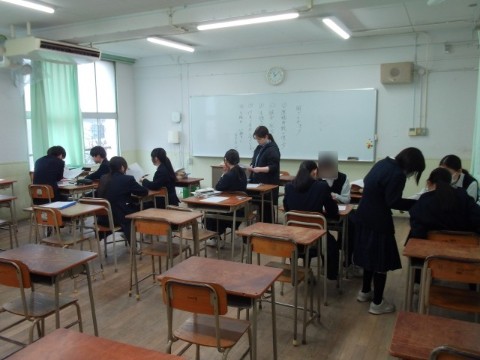 国語は、分割授業で古文と作文の学習をしています。