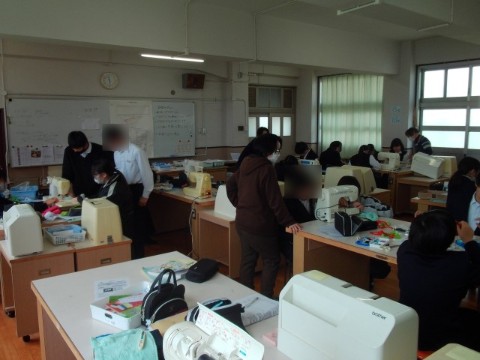 家庭科は、ミシンを使った被服実習をしています。