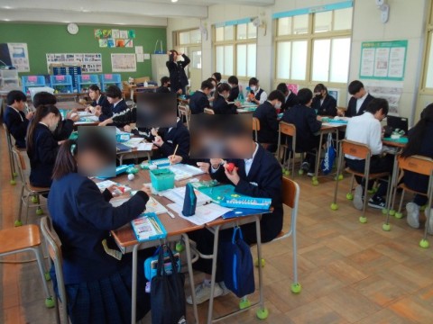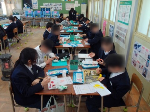 美術は、『不思議な果物』と題して果物を創作し着色しています。