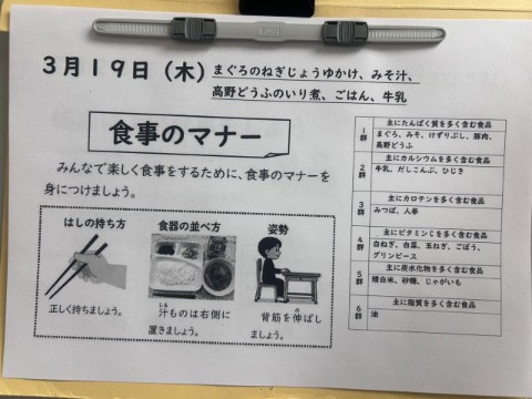3/19(木)本日の給食