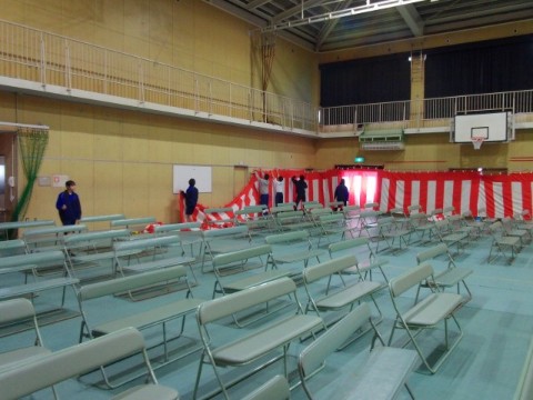 新2・3年生が入学式の会場設営、周辺清掃をしてくれました。
