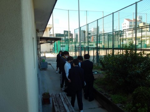 理科は、学校の敷地内の植物を観察しています。