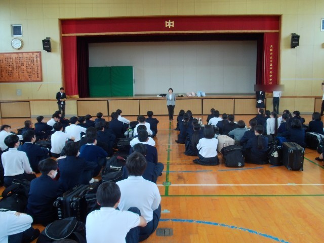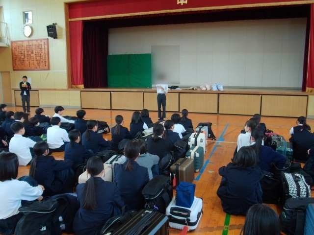 校長先生からは「安全第一」で「ありがとう」の気持ちを忘れず、「アクティブ」に楽しもう!とお話がありました。代表生徒からは、「最高の思い出を作ろう」と呼びかけがありました。また、本日同行していただく、旅行会社の方と写真屋さんの紹介がありました。