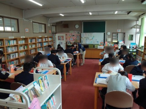 国語は、図書室で辞書を引いて言葉の意味調べをしています。