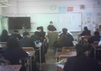 先日とは違うクラスが、校長先生に面接練習をしてもらっています。