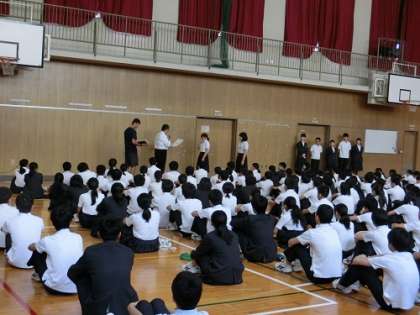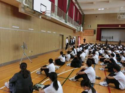 5月27日(月)朝の全校集会のようすです。