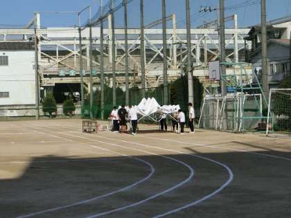 グランドでは、体育大会の練習に向けて、準備をしています。