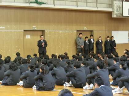 本日(2月3日)は、月曜日で全校集会がありました。