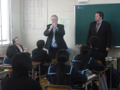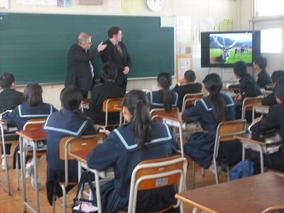 11月11日(火)、2年生英語の授業にC−NETのカリガン先生のお父さんとお母さんをゲストティーチャーとしてお迎えしました。