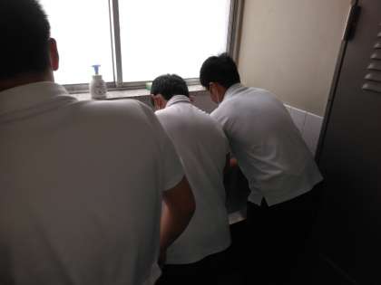 食事を終えた後は多くの生徒が手洗いを静かにしっかり行っていました。
