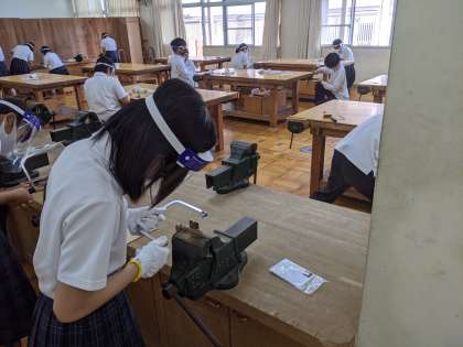 3年生は技術室で金属加工の実習
