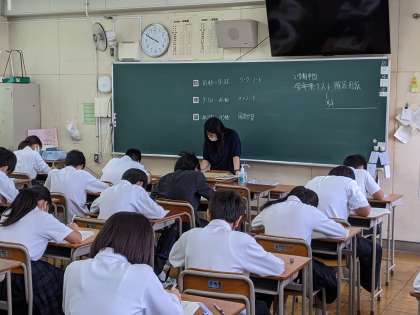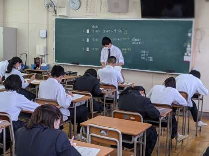 多くの生徒が休憩時間からノートやワークを確認して問題に臨んでいました。