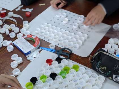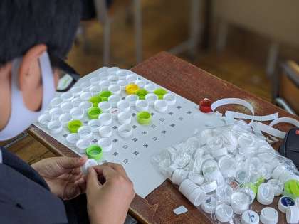 3年生も先週の修学旅行を終え、文化祭の取り組みが始まっています。ペットボトルのキャップを再利用して、モザイクアート(タイトルは「Love 大正 2020」)を作成しています。1,2年生同様、完成が楽しみです。