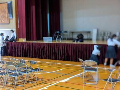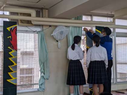文化祭に向けての準備が始まっています。明日の時程は次のとおりです。新型コロナウイルス感染拡大防止のため、保護者の参加については事前にお申込みいただいている3年生、PTA役員のみとなっていますのでご理解、ご協力をお願いいたします。参加いただく保護者につきましては入校許可証、健康観察票、上履き(靴袋)のご準備をお願いします。