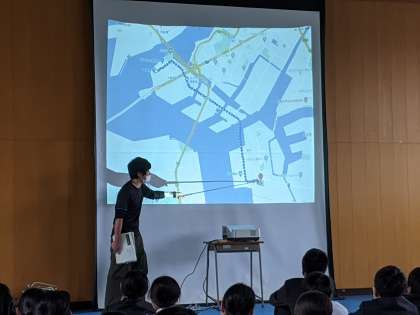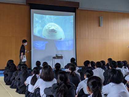 武道室では1年生が学年集会で、12月に実施する校外学習の説明を聞いていました。
