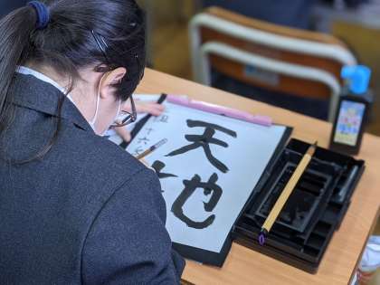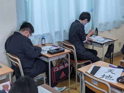 毛筆に慣れている生徒もそうでない生徒もしっかり取り組んでいました。
