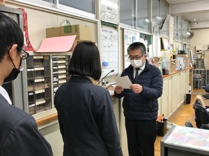 校内放送での全校集会で、令和3年度前期生徒会役員、