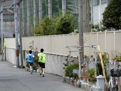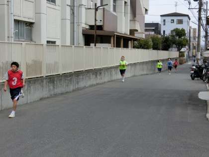 競技は運動場のトラックと外周の道路を使って行われ、1チーム5〜8人のメンバーで、男子は17km、女子は13kmの距離を走りぬきました。