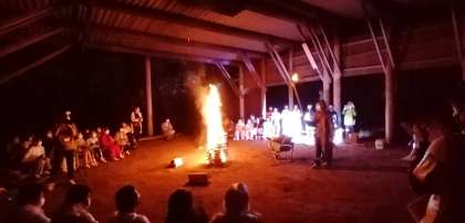 キャンプファイヤーをしました。マイムマイムの様子です。